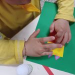 La giornata è iniziata con una merenda condivisa con i compagni delle classi quinte che hanno fatto da tutor ai piccoli ospiti accompagnandoli in una visita guidata della scuola e aiutandoli nell’attività laboratoriale che ha caratterizzato la mattinata: partendo dalla lettura dell’albo illustrato “Chi c’è tra i ritagli?” di Silvia Borando, ciascun bambino ha realizzato con il collage un animale a metà tra realtà e fantasia. Tra colori vivaci e angoli retti, sono magicamente nati ragni, rinoceronti, coccodrilli e gatti che sono diventati parte di un leporello che i bambini ritroveranno a settembre in prima elementare.