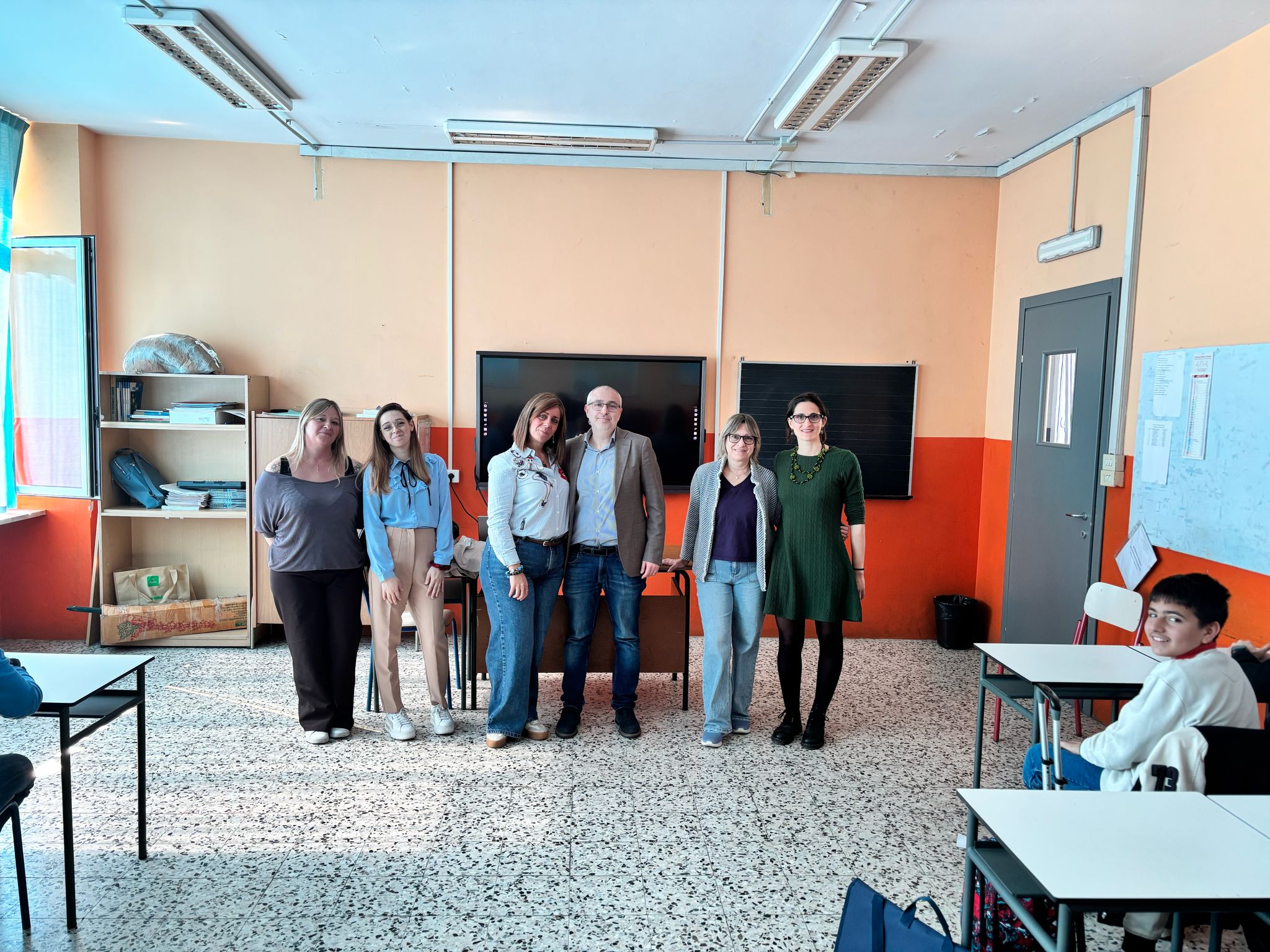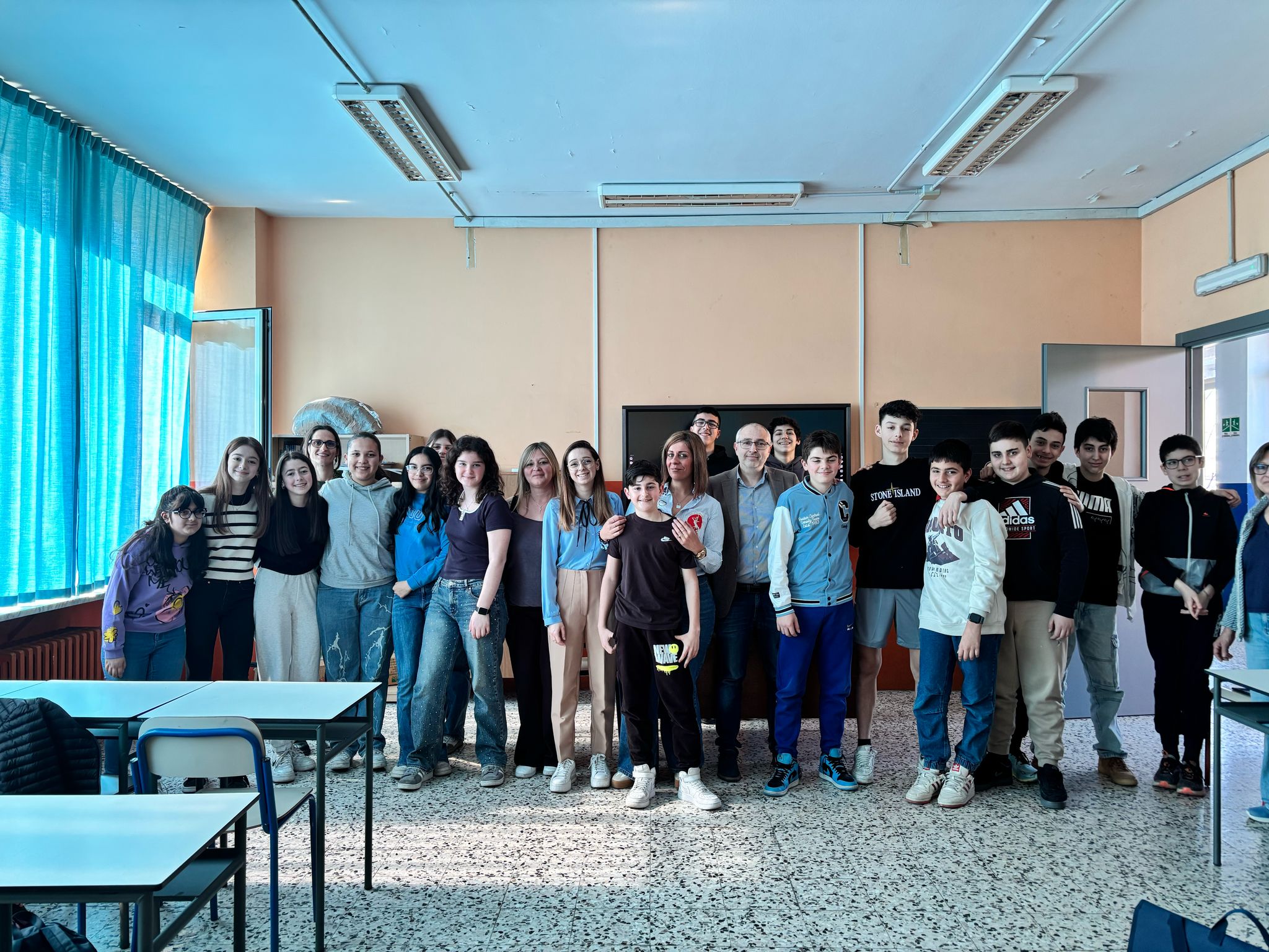 Giovedì 27 marzo, la classe 3D del plesso Pellico ha incontrato Nicoletta De Simone, direttrice della RSA di via Mezzaluna, e l’assessore alle Politiche giovanili e della Terza età, Daniele Bagarin, per un primo appuntamento relativo ad un nuovo progetto promosso da Amministrazione comunale, Istituti Comprensivi, personale della RSA e CCR.